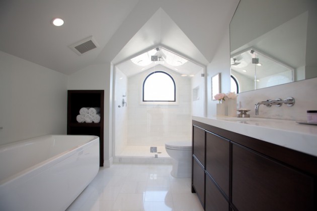 Gayhurst Road Family bathroom (w vaulted ceiling ... from idealcombi.com This contemporary kitchen features wooden vaulted ceilings in white color and a skylight that make a powerful statement above the dark kitchen cabinets. Learn how to create a vaulted ceiling from a flat ceiling. Most of our bathroom is going to have vaulted ceilings. Adding vaulted ceilings to a room makes it feel much larger and more spacious than it really is with a sense of grandeur that other designs can't match. The wall to the left is part of my 'thorn' do i frame the walls first to 8' and then build up from there to the ceiling or do i just frame all the way up? See more ideas about vaulted ceiling, vaulted ceiling living room, house design. Where is the optimal or recommended place to put a vent fan in this scenario? Find images of vaulted ceiling.